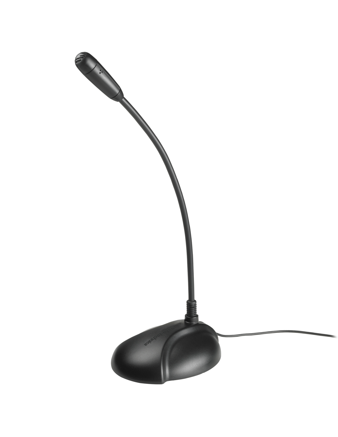 - Micrófono de sobremesa tipo flexo para uso en podcasting y videoconferencias.