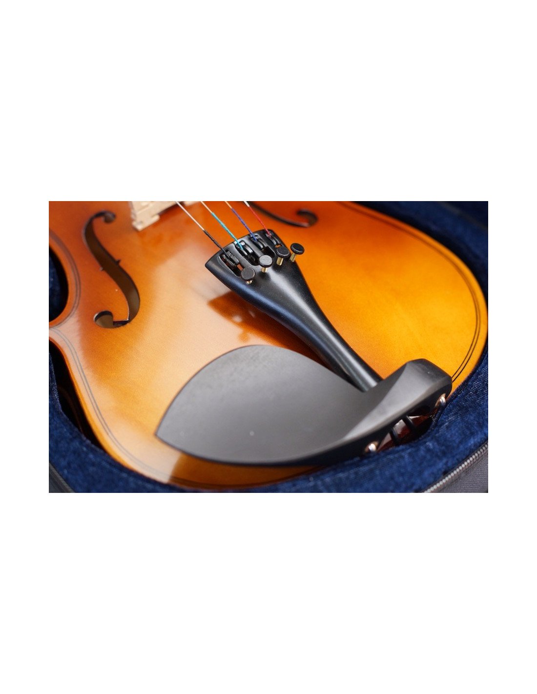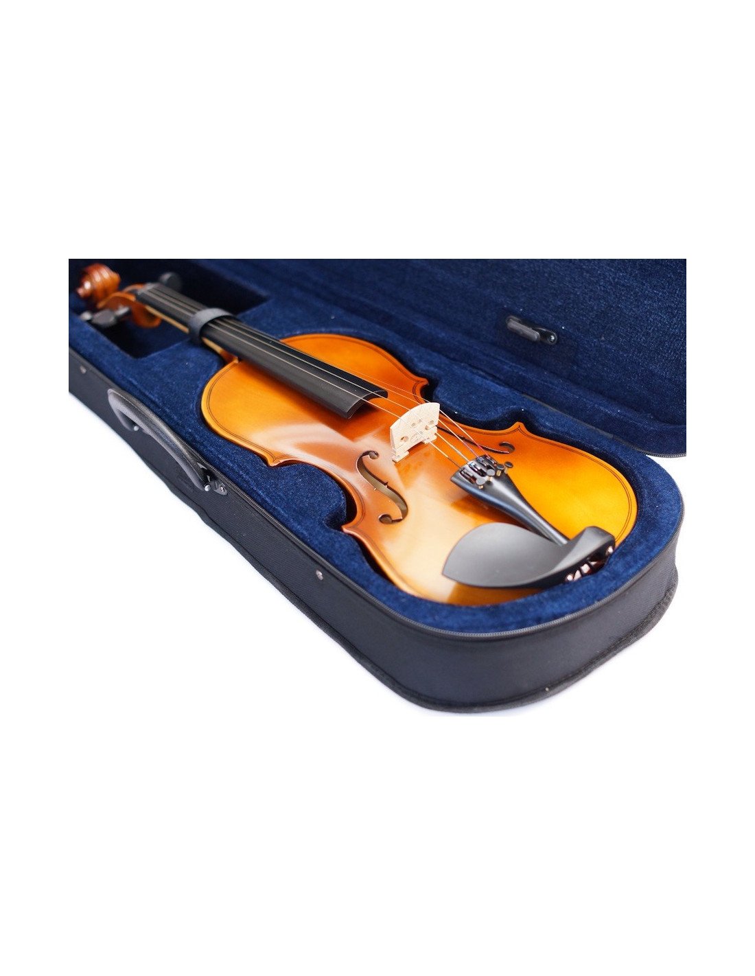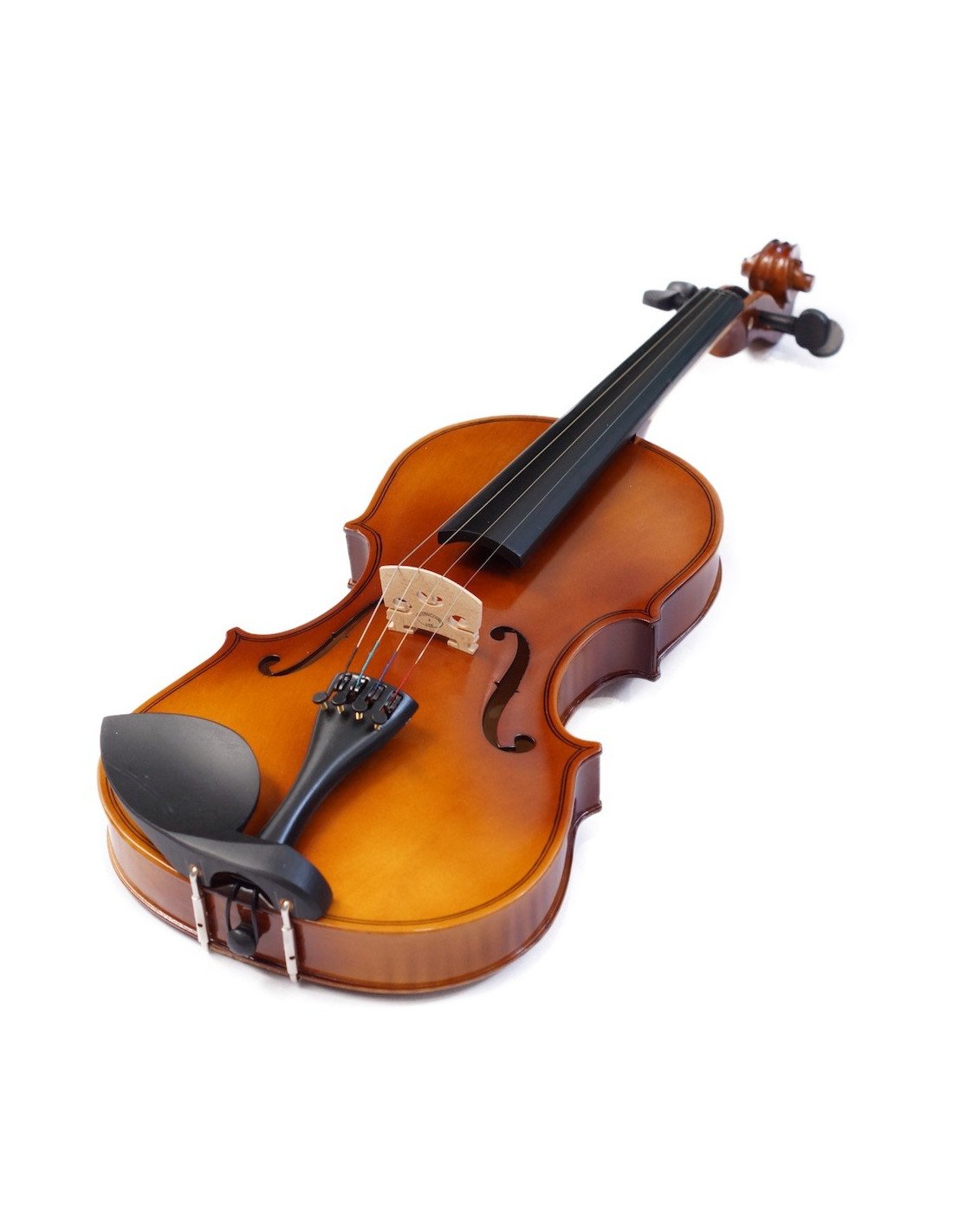 Violin GREKO VB301M 3/4 tamaño 3/4 equipado con estuche arco y colofonia. Manufacturado en Madera de Arce solido en tapa y Liden en espalda y laterales. Diapason en madera solida tenida. Arco regulable en Wengue brasileño. Incluye estuche semiduro con interior cavitado y exterior en lona. Puente metálico con microafinador en cada cuerda. Nivel inicial buen sonido y desempeño. Excelente balance costo / calidad, ideal para ser tocado en todos los géneros musicales.