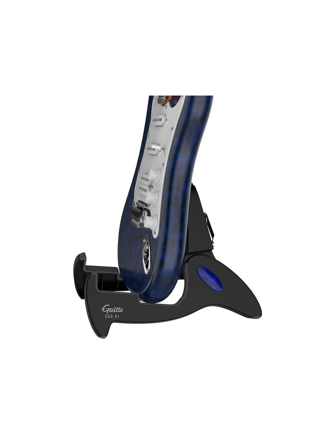 Soporte GUITTO GGS-01 para guitarras. Es una opción llamativa y funcional para mantener tu guitarra segura y accesible. Con un diseño futurista y características de alta calidad, este soporte ofrece una solución confiable para cualquier guitarrista. A continuación se presenta una descripción detallada de sus características: